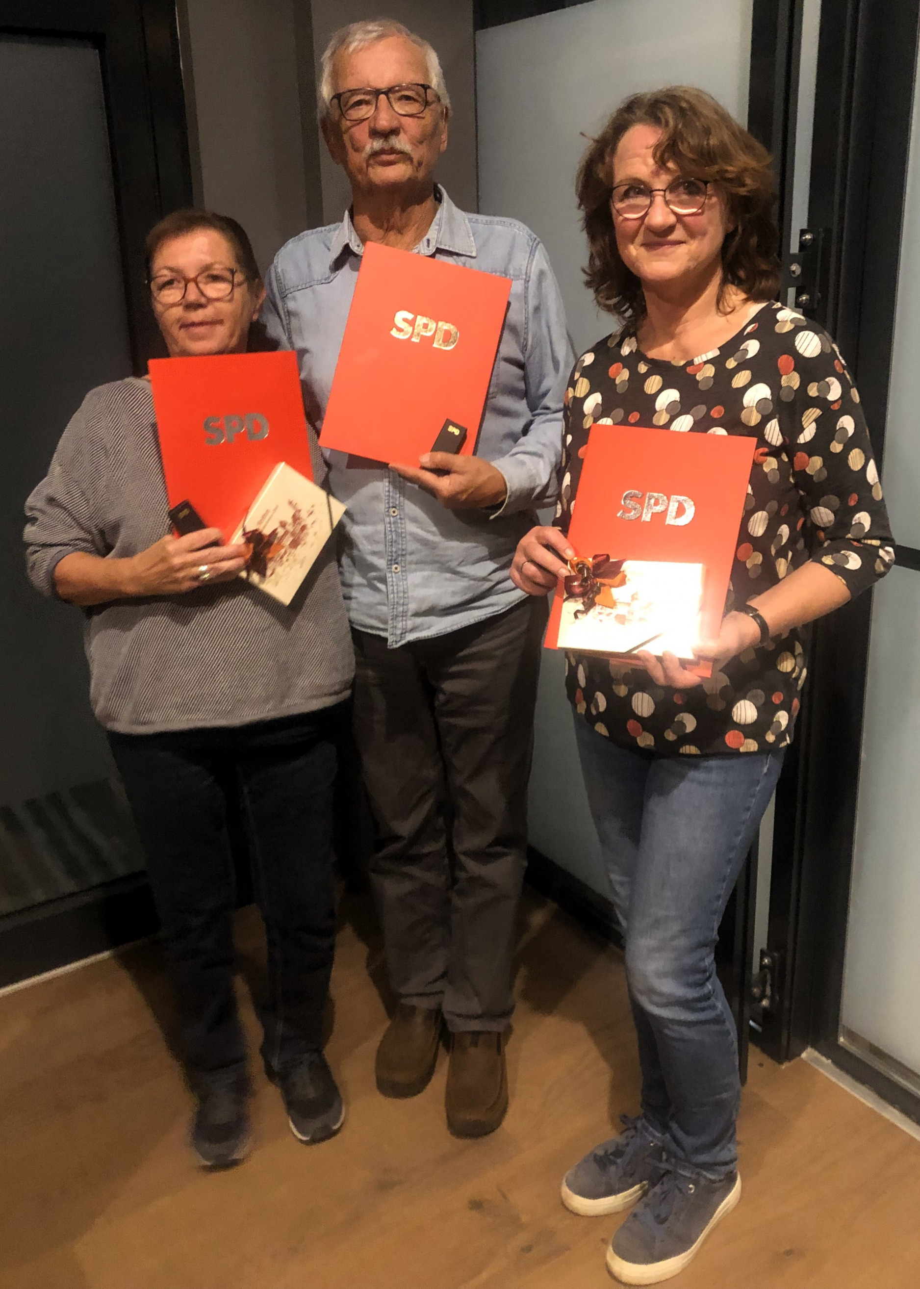 Am 16. Oktober 2024 trafen sich die Genossinnen und Genossen des SPD Ortsvereins Meßkirch zu ihrer Hauptversammlung mit Neuwahlen. Nach den üblichen Regularien wie Tätigkeitsbericht, Kassenbericht und Entlastungen wurde ein neuer Vorstand gewählt. Einstimmig wurden gewählt: Rüdiger Hillenbrand 1. Vorsitzender, Martina Mülherr 2. Vorsitzende, Rolf Wahmann Kassierer und Silke Schönholzer zur Schriftführerin. Aus dem Vorstand ausgeschieden sind Katrin und Sven Lumb. Im Anschluss wurden dann Rosemarie Schaz und Martina Mühlherr für 25 Jahre Mitgliedschaft in der SPD geehrt. Rüdiger Hillenbrand überreichte die Urkunden und die Anstecknadeln zusammen mit einem kleinen Geschenk. Beide Genosssinnen traten am gleichen Tag in die SPD ein und sind bis heute aktiv im Vereinsleben eingebunden und M. Mühlher seit 17 Jahren im Gemeinderat. Danach überreichte M. Mühlherr Rüdiger Hillenbrand die Urkunde für 40 Jahre SPD Mitgliedschaft. In einer kleinen Laudatio erzählte sie von den unterschiedlichsten Wegpunkten in dieser Zeit. 23 Jahre Stadtrat und 27 Jahre SPD Ortsvereinvorsitzender zeugen von einer langen, solidarischen Arbeit für das Gemeinwohl und die Ziele der SPD.